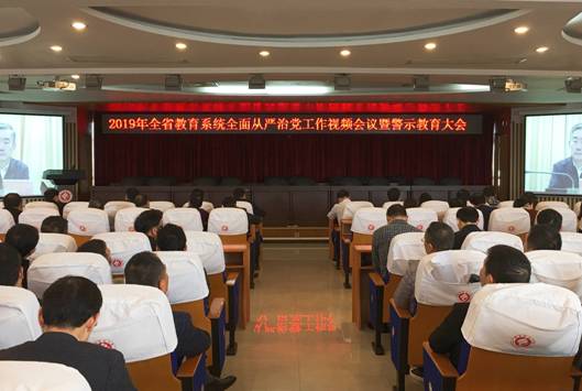 3月20日上午,省教育工委、省教育厅召开2019年全省教育系统全面从严治党工作视频会议暨警示教育大会,学校在学术交流中心六楼会议室设立分会场,学校党委书记陈晓飞、校长皮修平及在家校领导、全体中层干部、校纪委委员、各党总支和直属支部纪检委员、纪委监察处全体工作人员140余人参会。