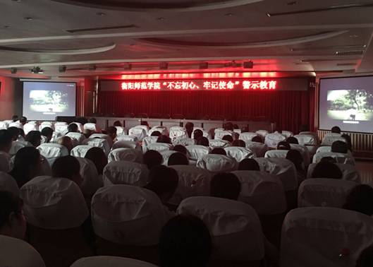 9月29日下午,学校在办公楼六楼报告厅组织全校处级以上领导干部开展“不忘初心、牢记使命”警示教育活动,观看警示教育片《蜕变的初心》。在家校领导,正、副处级干部及纪委监察处全体成员参加活动。活动由校纪委副书记、纪委监察处处长宋科主持。
