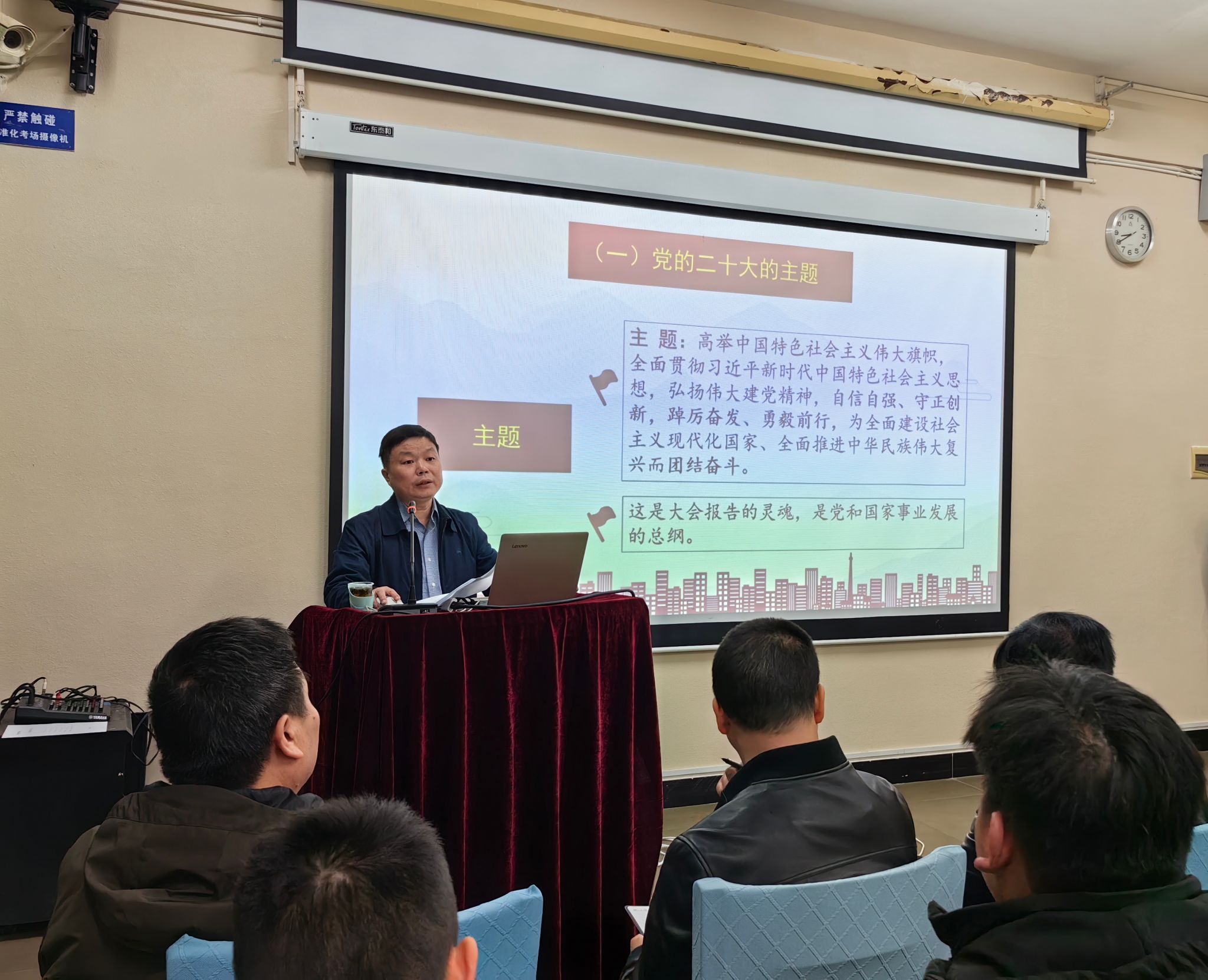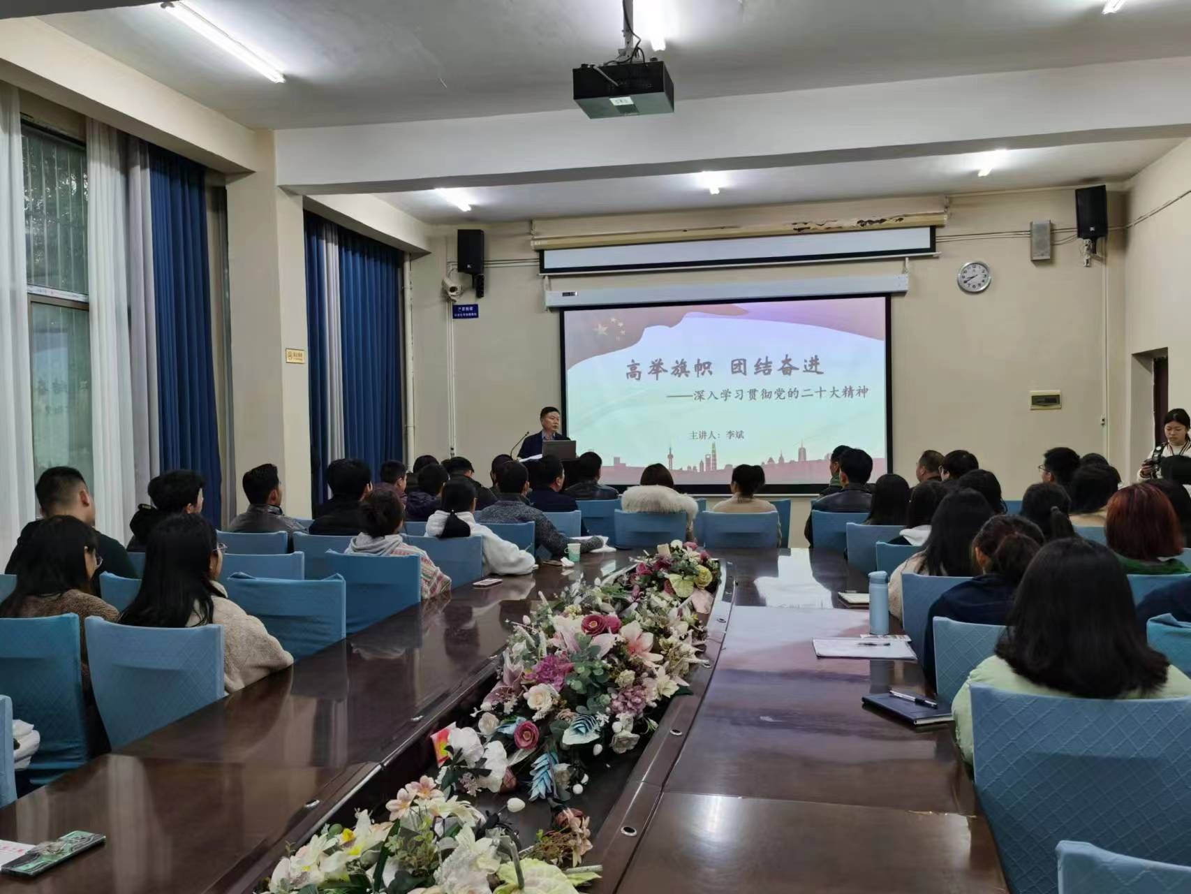 为深入学习贯彻党的二十大精神,做深做实纪检监察干部学习教育活动,3月23日下午,校党委委员、纪委书记李斌在美术楼103会议室开展了一场“高举旗帜 团结奋进——深入学习贯彻党的二十大精神”主题党课。校纪检监察机构全体干部、美术学院、体育科学学院全体师生党员参加党课学习。